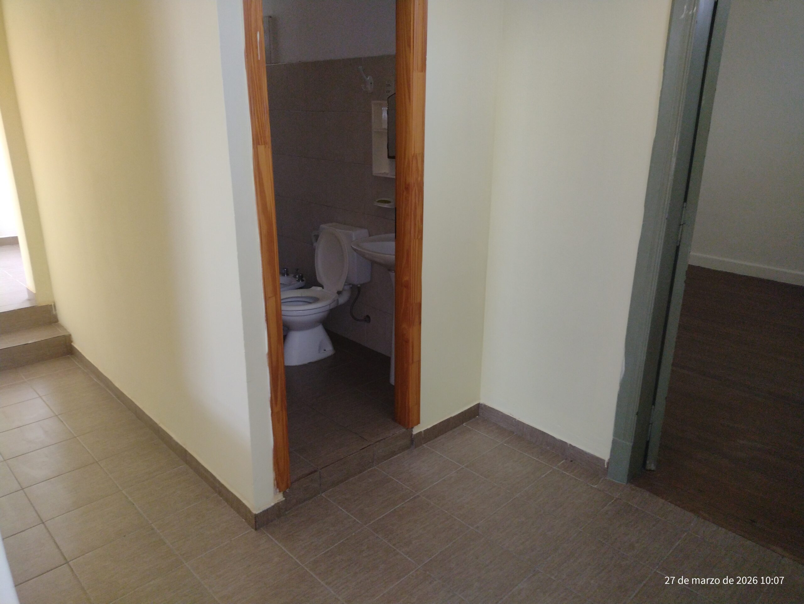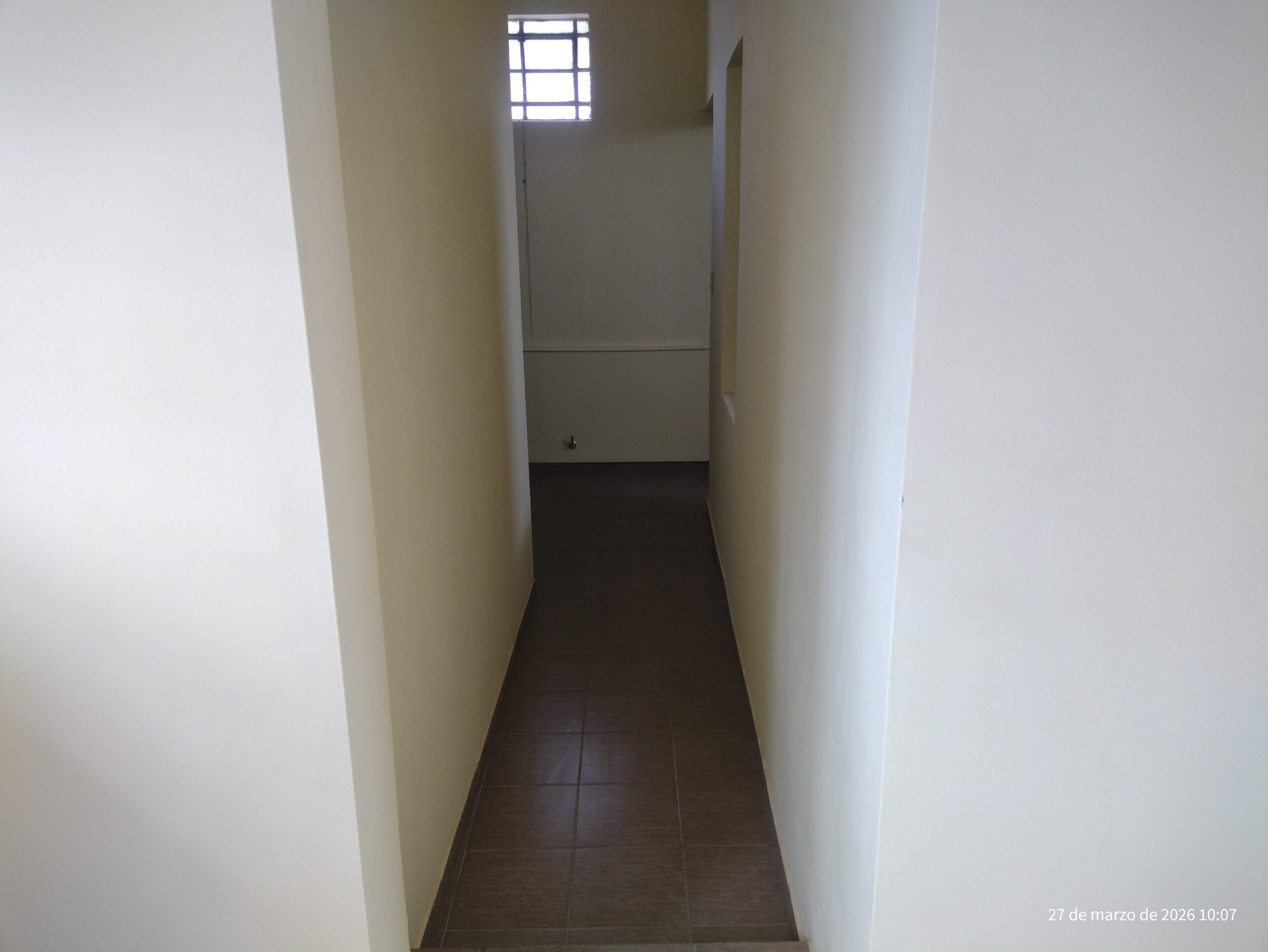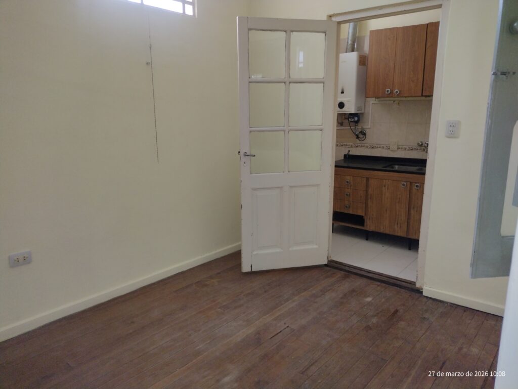 Sala de estar, pasillo a distribuidor a dormitorio, baño y comedor mas cocina.